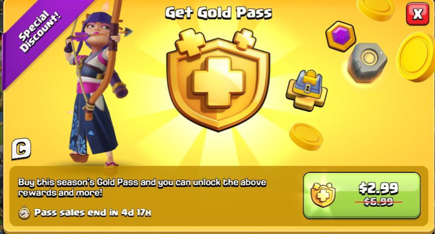 1. Выберите нужный вам Gold Pass или пакет.