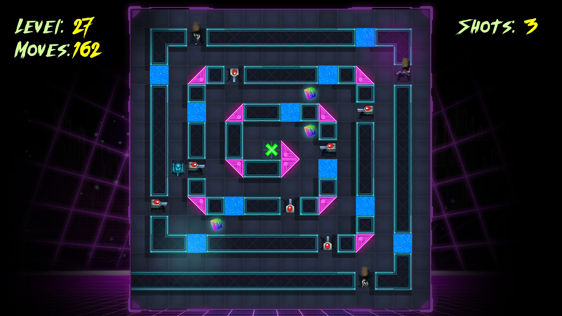 "Cyber Tank" is a challenging puzzle game which adds various mechanics on top of the Sokoban genre:
