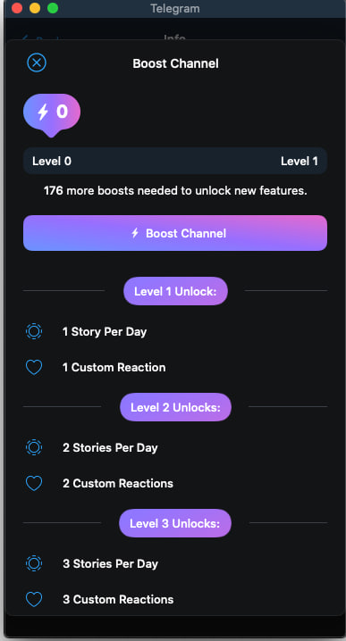 🚀 С нашей услугой Boost вы можете повысить уровень вашего канала или группы и открыть доступ к эксклюзивным функциям: