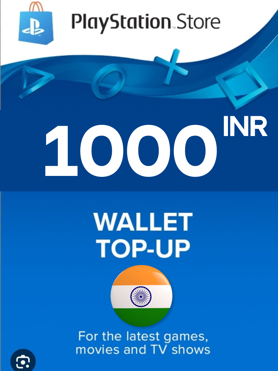 Вы получите ключ Карты оплаты PlayStation Store (PSN Gift Card) для пополнения баланса на 1000 INR (индийский рупий) для аккаунта Индия.