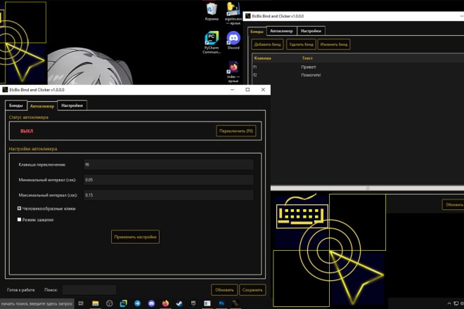 ElcBis Bind and Clicker – инструмент для автоматизации ввода текста и кликов в играх и приложениях.