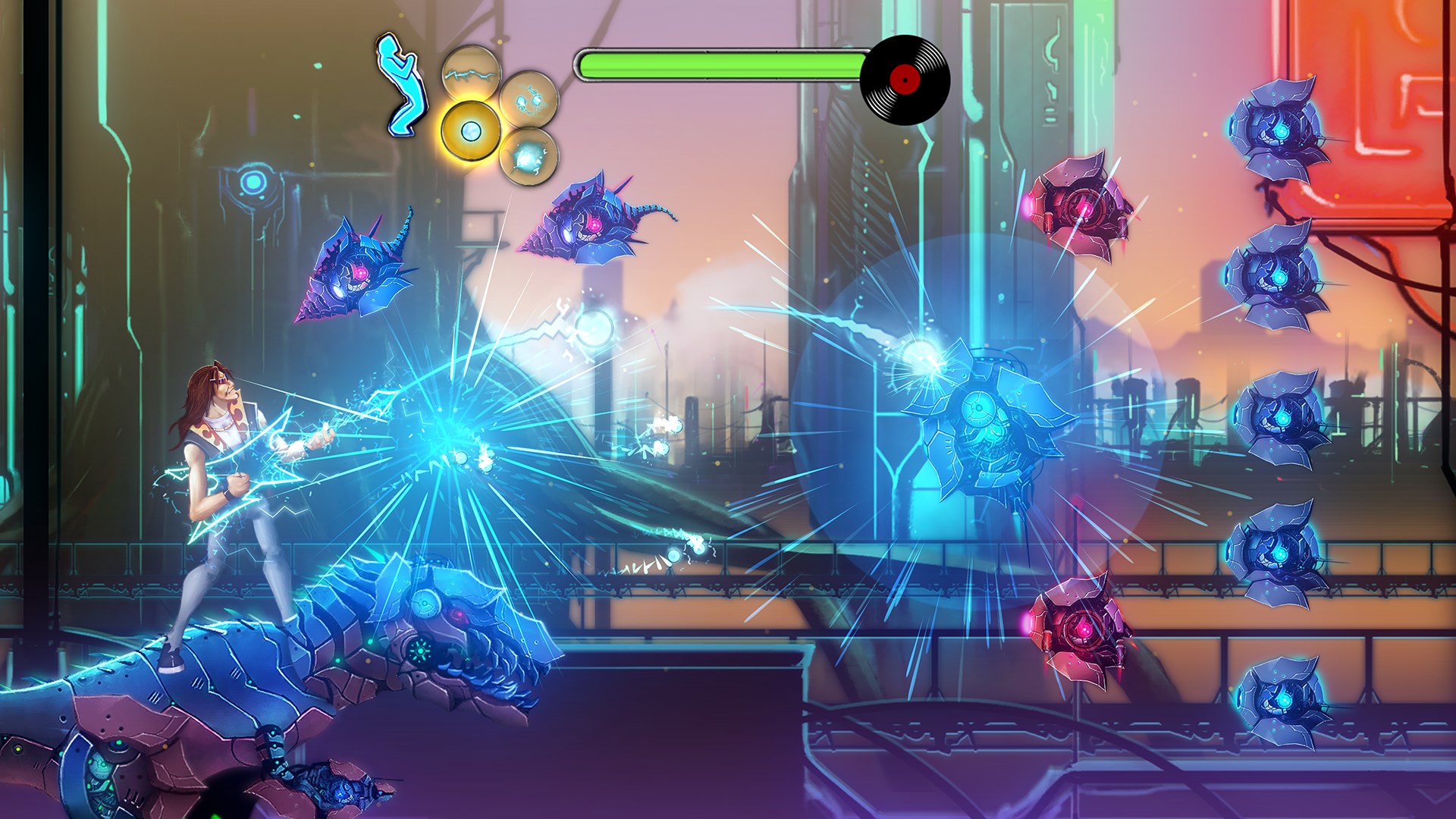 Стреляй пулями, лазерами и молниями — твоя виртуальная гитара является настоящим оружием! Катайся на динозаврах, акулах и крокодилах! Бей викингов, инопланетян и демонов!