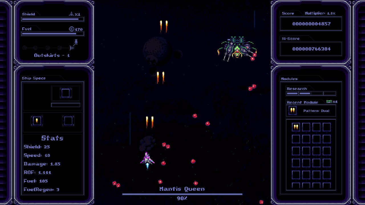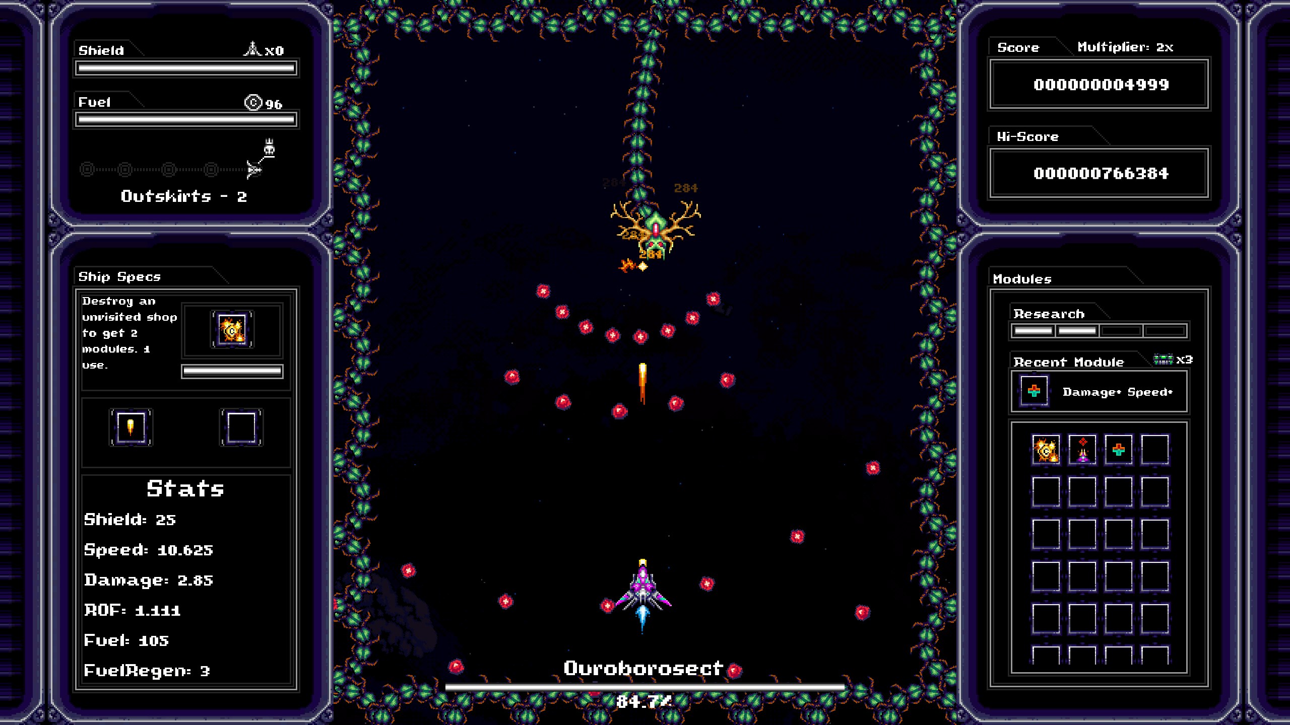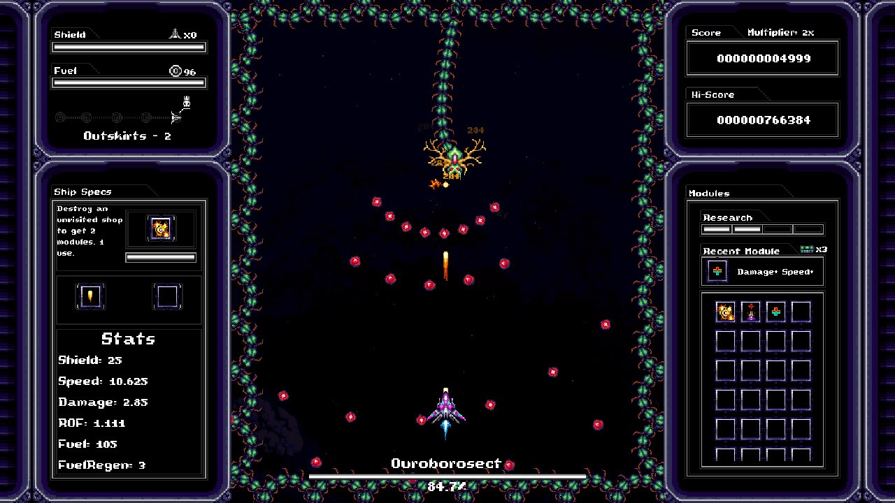 BroodStar is a classic arcade shoot’em up with heavy roguelike elements. Careful, though… the vastness of space contains many formidable enemies. If you fall along the way, you have to start over — the only thing you’ll bring with you are the upgrade modules you collected in your past runs, in the form of research points that augment your ship. Will they be enough to get you through hordes of unknown creatures and monstrous bosses, and fulfill your quest of defeating the living planet — the BroodStar?
