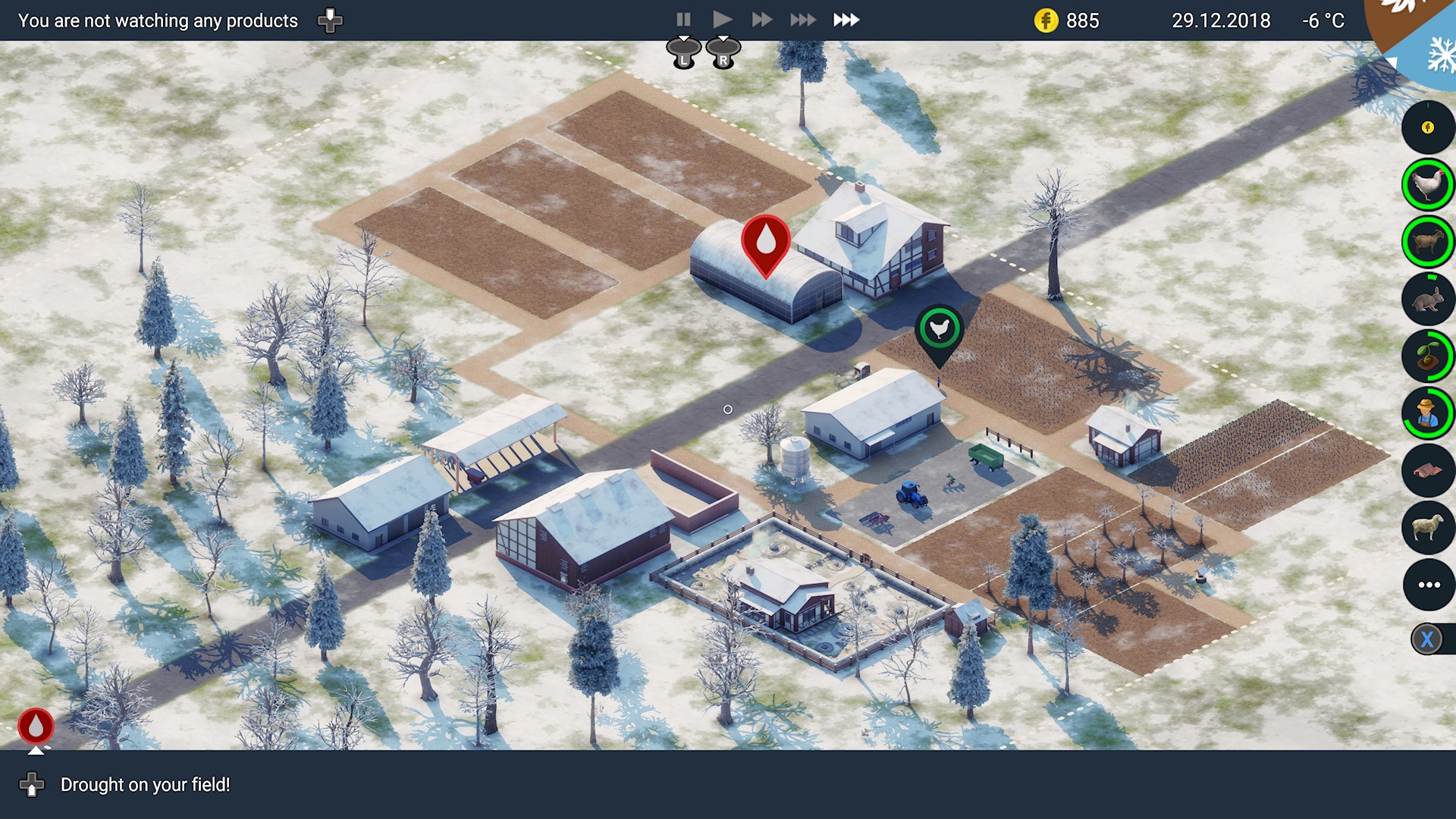 Manage your own farm in the game Farm Tycoon! Expand your farm business, produce cheap and sell your products at high prices. Control the land cultivation process, select the best employees, buy the most appropriate farm equipment, raise livestock and process the harvested crops. Various camera modes allow you to enter into a strategic view as well as to look at the world through the eyes of the employee. Respond to the changing weather and seasons. Create a greenhouse to sell crops in early spring. Buy new and used special agricultural machinery to quickly harvest and sell crops before their expiration date. Optimize costs and employ seasonal workers only during the harvest time. Accept challenges from neighbors to prove who is the best farmer in the area.