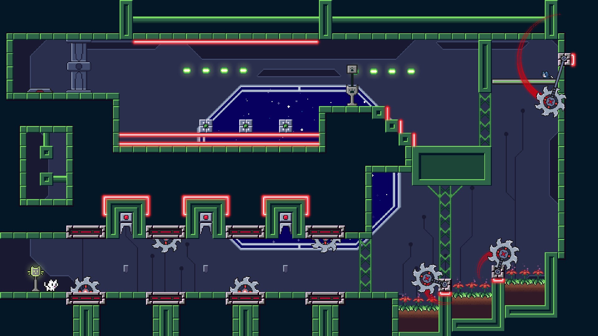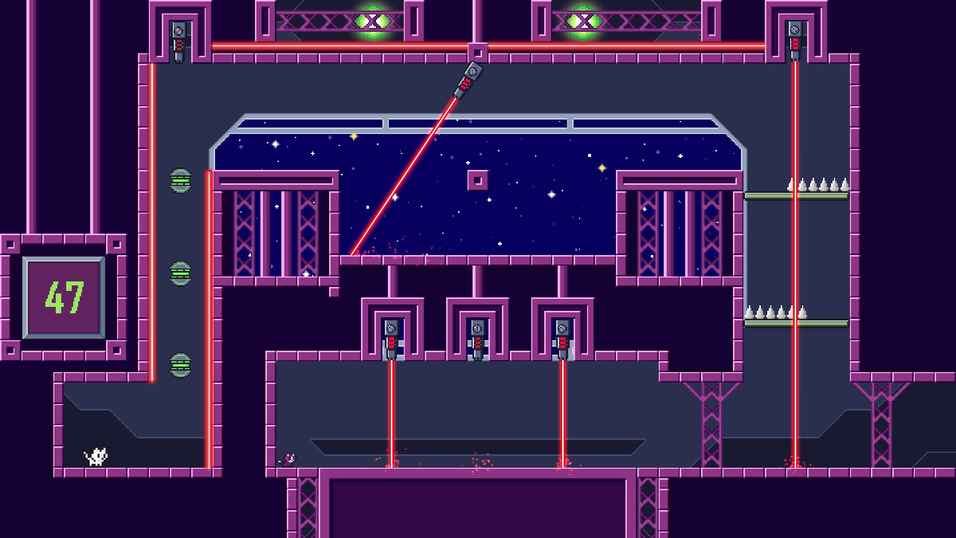 Помоги котенку спасти его человека и других котят, пойманных в ловушку космического корабля, управляемого мощным суперкомпьютером. Чтобы попасть туда, тебе нужно будет прыгать, карабкаться и прорываться через 80 уровней, полных смертоносных шипов, пил, ракет и других опасностей.