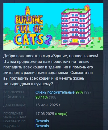 https://store.steampowered.com/app/2810730/A_Building_Full_of_Cats_2/STEAM GIFT REGION РОССИЯ.