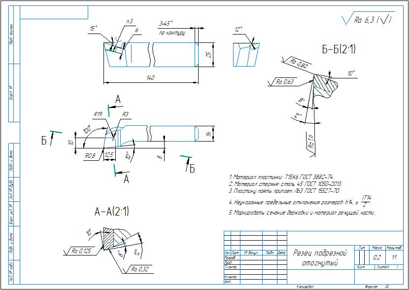 Чертеж токарного подрезного отогнутого резца в программе компас