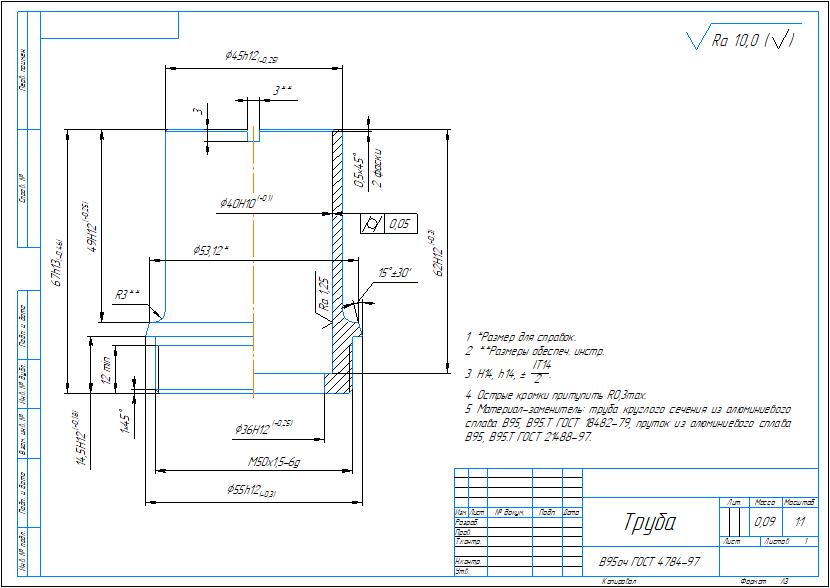 Технологический процесс изготовления детали труба в виде плаката на формате А1. Также приложены рабочий чертеж детали труба, ее заготовки и трехмерная модель детали. Все выполнено в программе компас