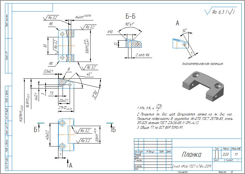 Технологический процесс изготовления детали планка в виде технологических карт: маршрутные карты, операционные карты, карты эскизов. Карты выполнены в Word. Также приложен рабочий чертеж детали планка и ее 3D модель в компасе.