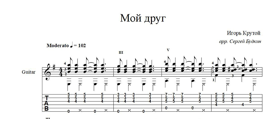 Аранжировка для гитары песни Игоря Крутого "Мой друг".