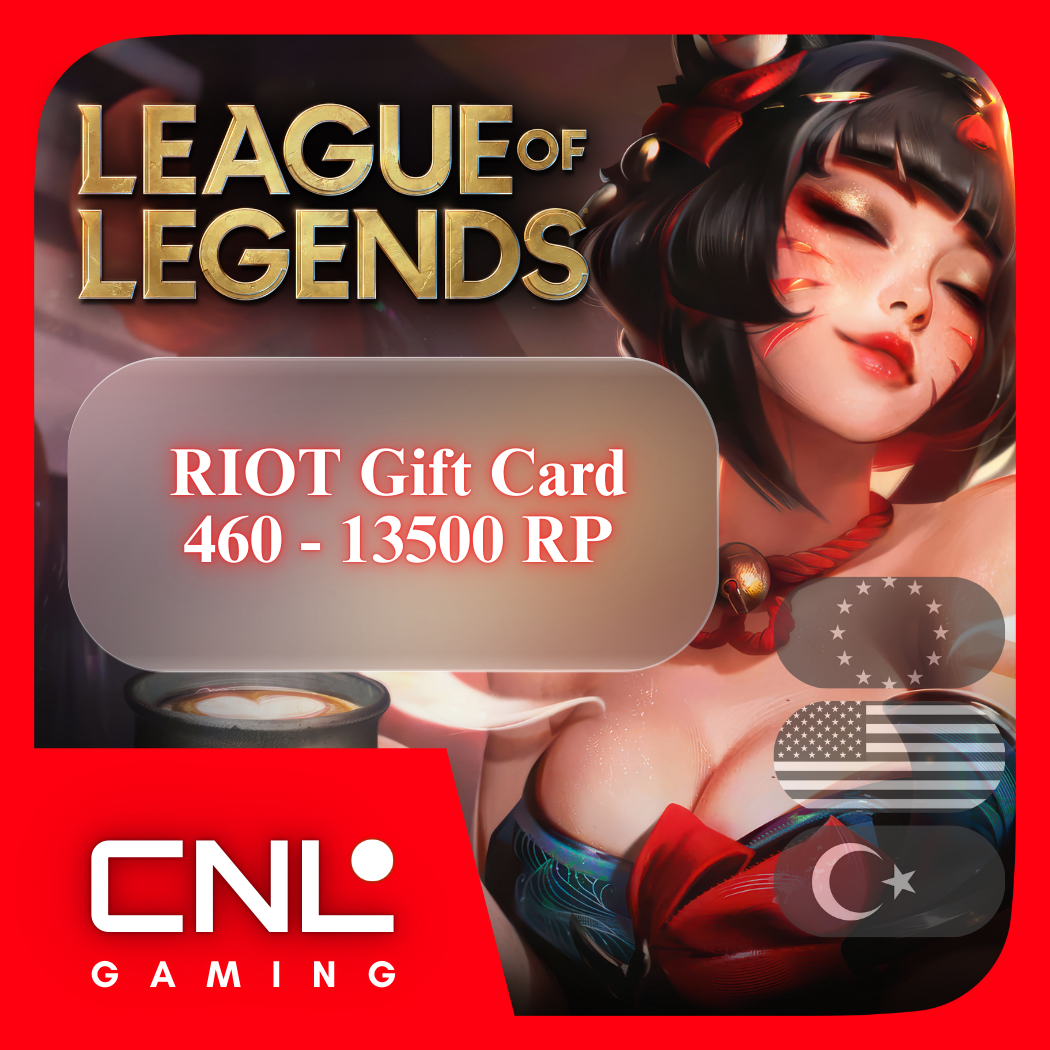 Get your official Riot Access Cards for League of Legends across regions EUN / EUW / US / TRY with denominations from 460 RP up to 13500 RP.
