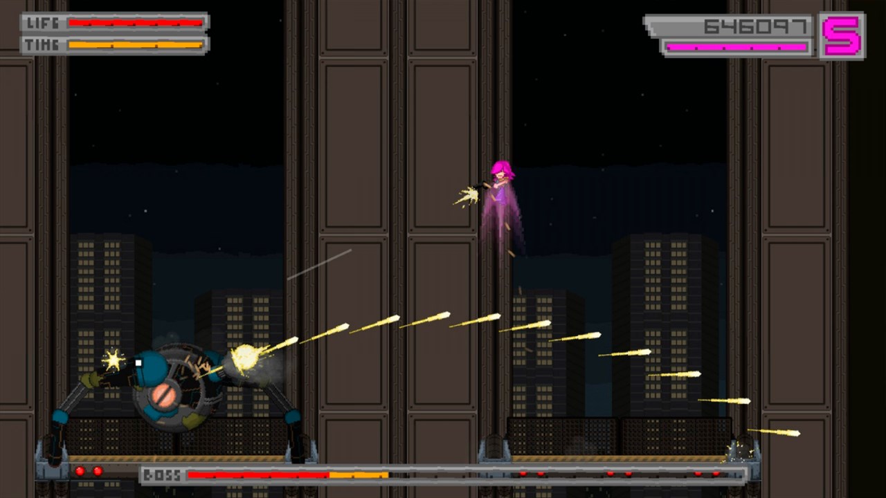 Bleed is an action-platformer focused on stylish, acrobatic dodging and fluid, challenging gameplay. There´s no filler -- just you and your skills against seven levels of enemies, obstacles, breakneck set-pieces and inventive bosses!