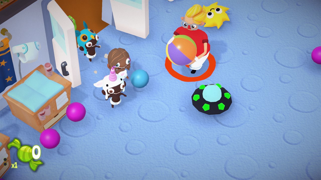 В вашем распоряжении игрушки для игр, еда для обеда, салфетки и подгузники для вы-знаете-чего и даже удобный робот-пылесос на радиоуправлении, который поможет с уборкой. Если вы работаете самостоятельно, вам помогут усиления: телепорт позволяет быстро перемещаться по комнате, а погремушки отвлекут детей, если они затеют драку.
