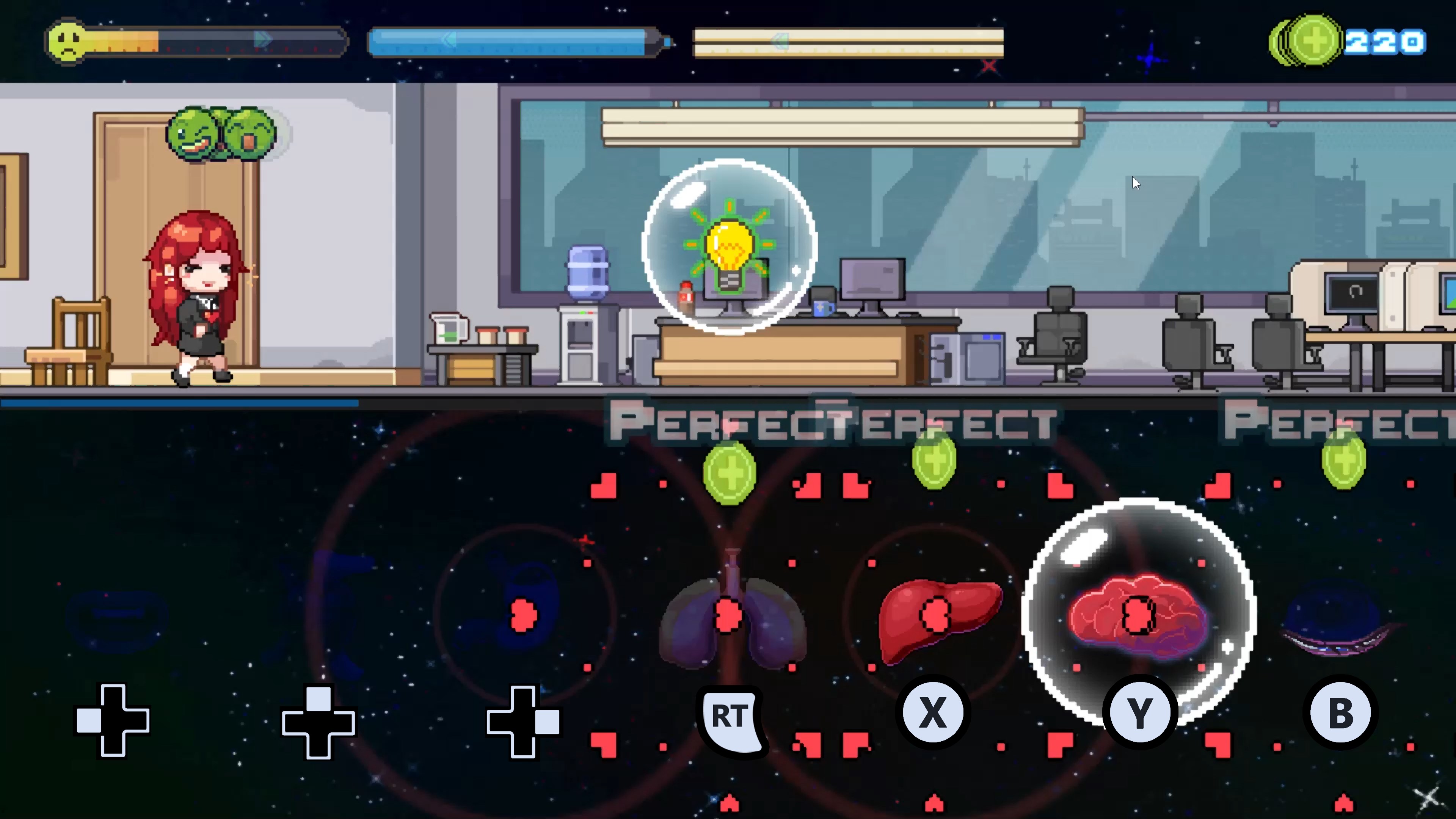 Life isn’t easy and you’ll feel it in every beat. Stay focused and follow the rhythm to keep each of her organs working properly.