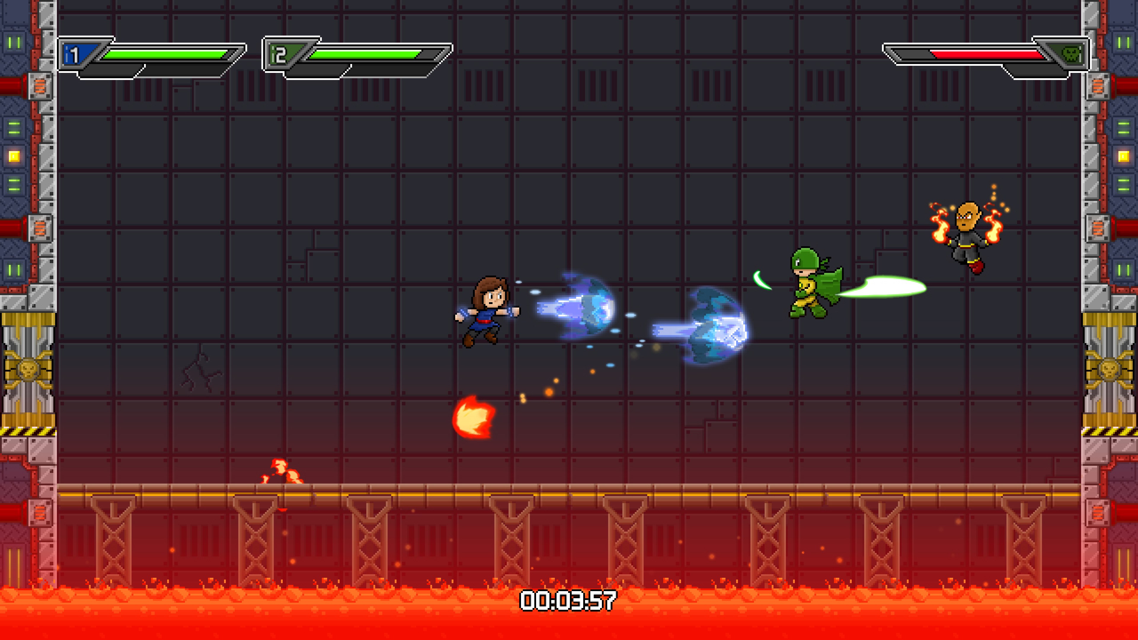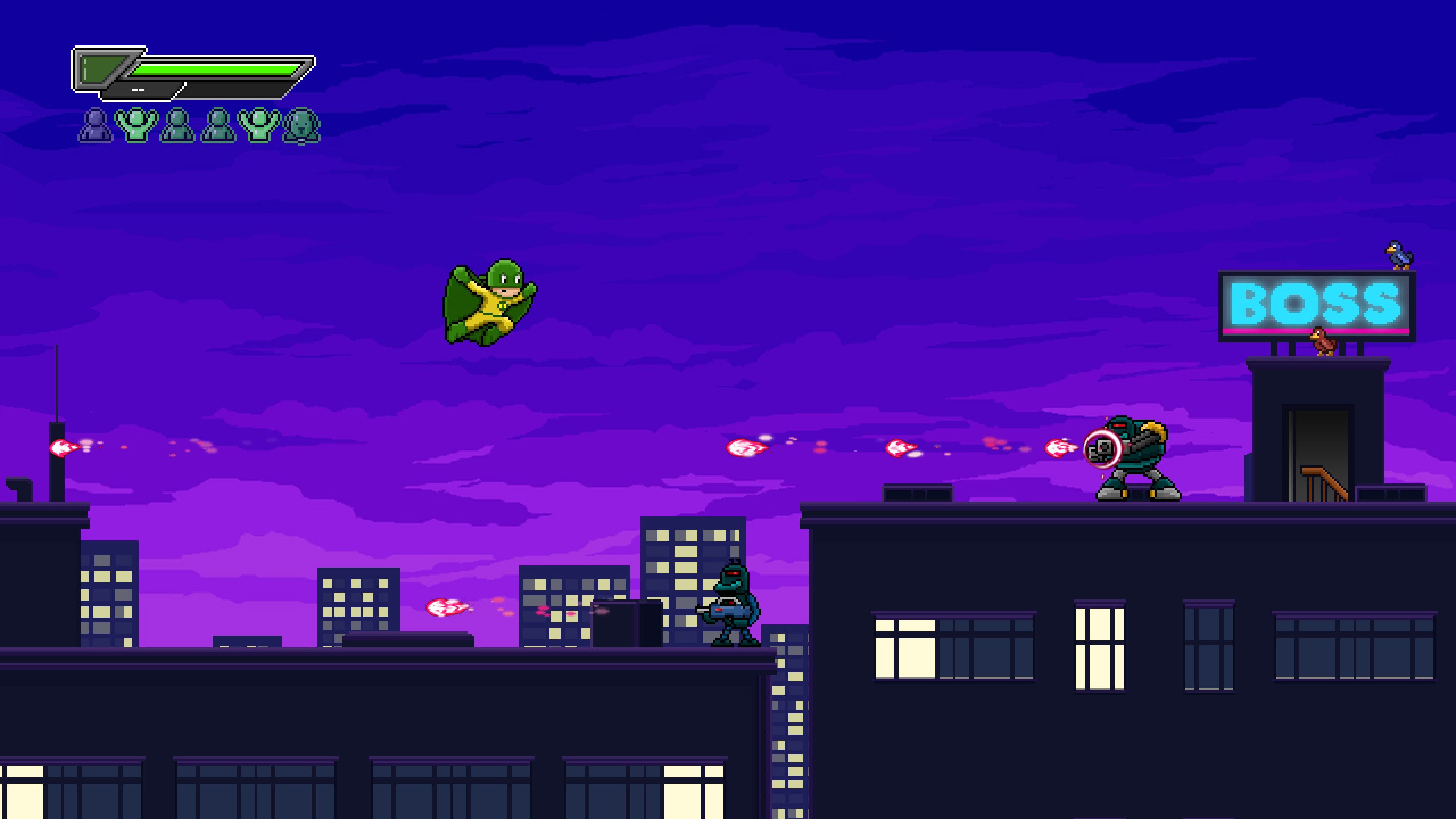 Basureroes: Invasion is a 2D platform game with retro aesthetics in which a group of heroes with different abilities must save the world from an alien invasion. Run, jump and fight your way through twenty levels full of danger and epic boss fights.
