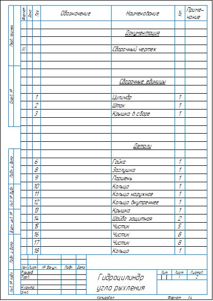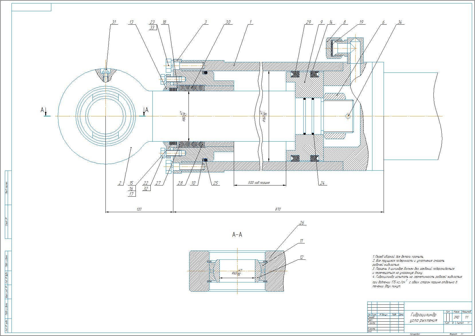 Сборочный чертеж и спецификация гидроцилиндра бульдозерно-рыхлительного агрегата ДЭТ-400. Диаметр гидроцилиндра - 160 мм. Чертеж и спецификация выполнены в компасе