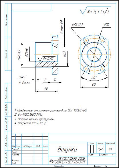 Рабочий чертеж и 3д-модель детали втулка в программе компас