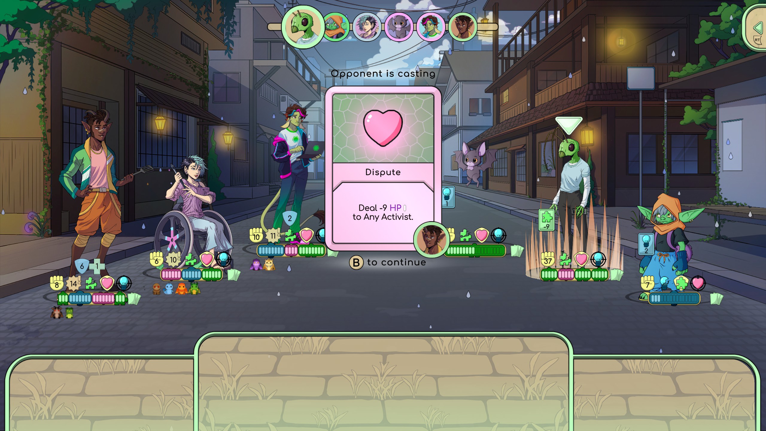 Составьте команду из семи доступных персонажей (выберите Луку, если вам по нраву понурый эмо-бой, или Райли, если цените отпадные танцевальные движения).