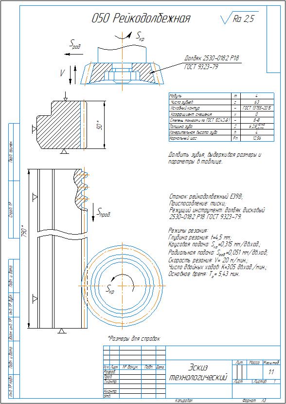 Технологический эскиз рейкодолбежной (зубодолбежной) операции в программе компас