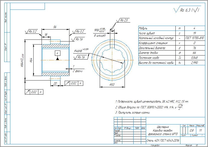 Комплект технологических карт на изготовление детали шестерня. Представлены следующие карты: маршрутные карты, операционные карты, карты эскизов. Карты выполнены в ворд. Также приложен рабочий чертеж детали шестерня в компасе.