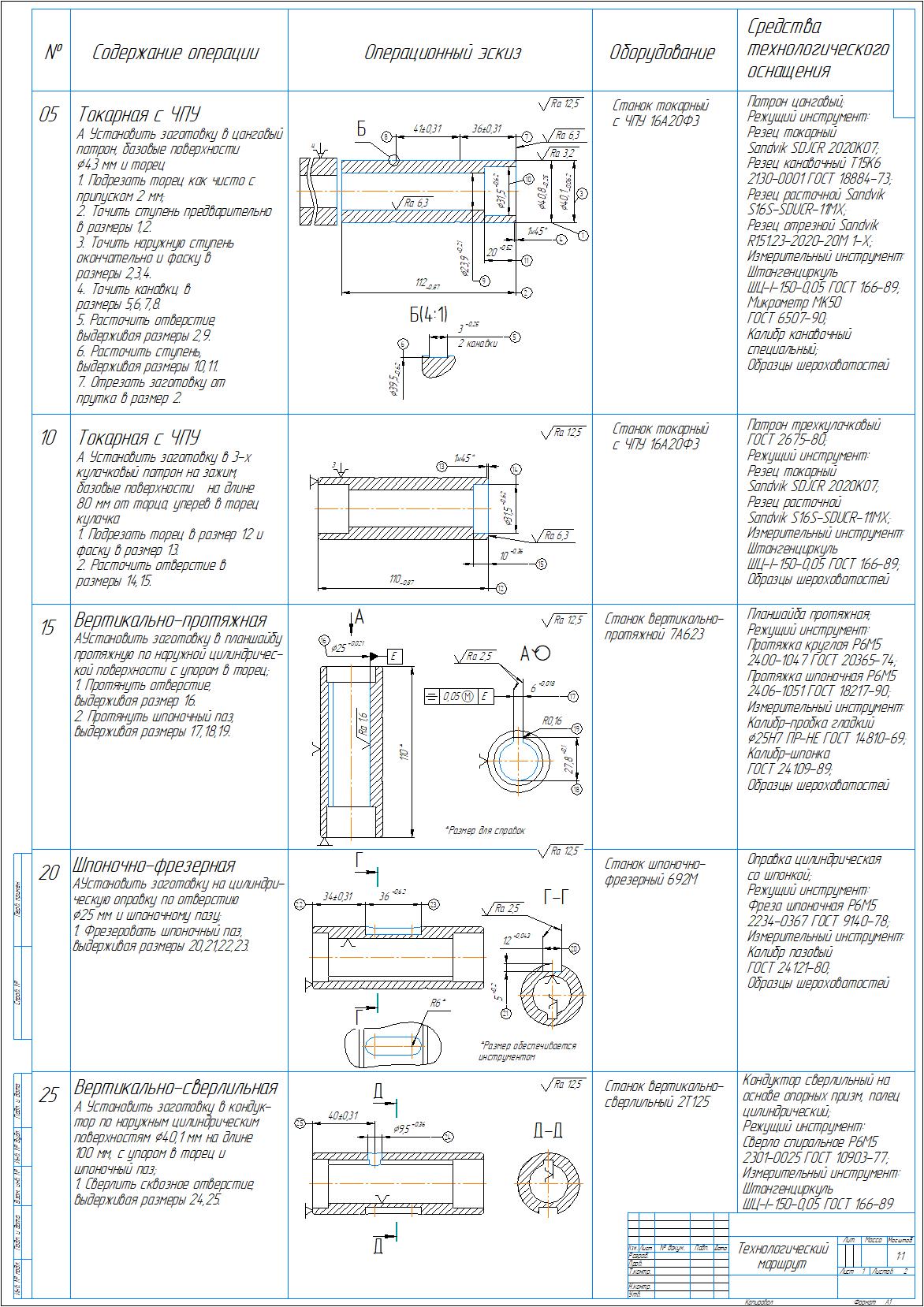 Технологический процесс изготовления детали втулка в виде плакатов на форматах А1, А2, где представлена последовательность операция механической обработки детали с эскизами. Также приложен рабочий чертеж детали втулка. Чертежи выполнены в компасе.