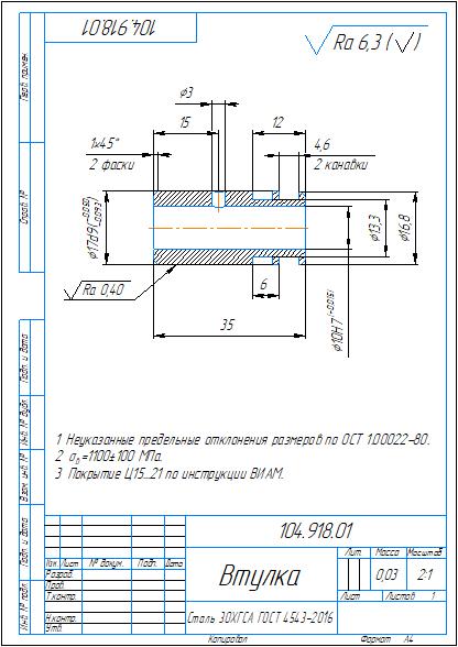 Рабочий чертеж и 3д-модель детали втулка 104.918.01 в программе Компас 3D
