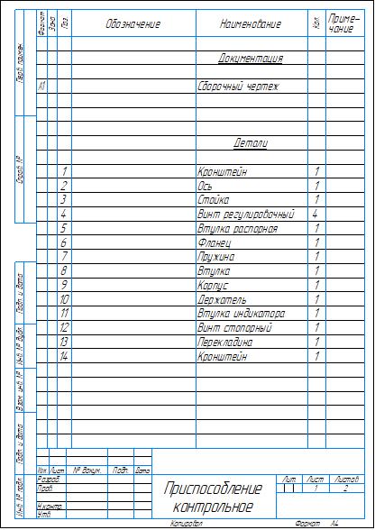 Сборочный чертеж и спецификация контрольно-измерительного приспособления (КИП) для контроля биения резьбы. Также приложен рабочий чертеж детали. Чертежи и спецификация выполнены в компасе.