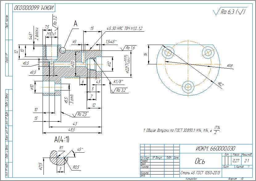 Технологический процесс изготовления детали ось в виде технологических карт: маршрутные, операционные карты, карты эскизов. Карты выполнены в ворд. Также приложены рабочий чертеж детали ось и ее 3д-модель. Чертеж и модель выполнены в компасе.