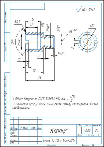 Рабочий чертеж и 3d модель детали "Корпус" в программе Компас 3D