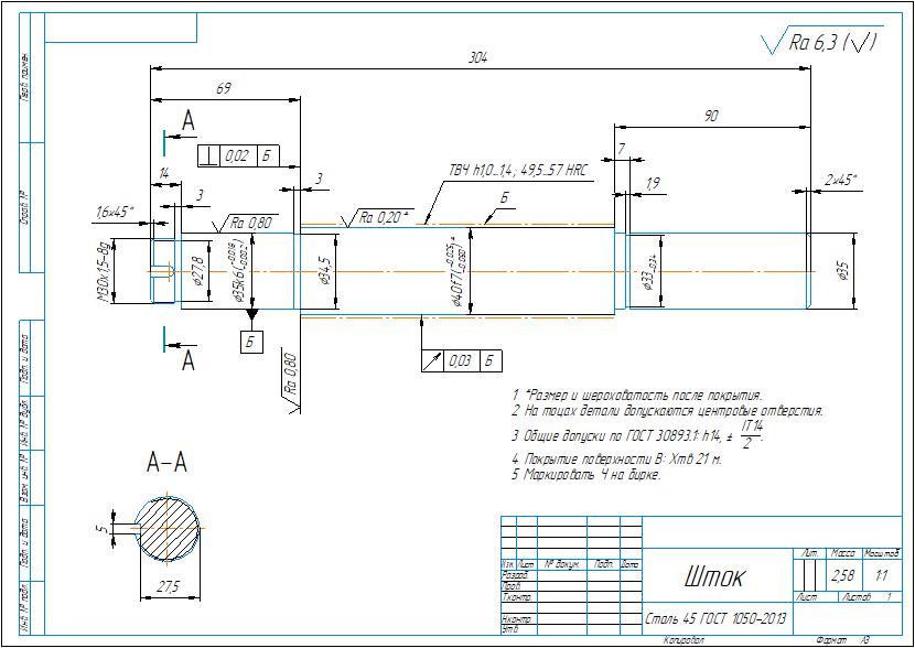 Рабочий чертеж и 3D модель детали "Шток" в программе Компас 3D