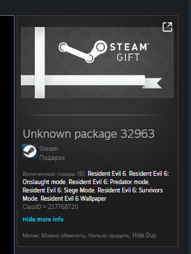 Включенные товары (6): Resident Evil 6, Resident Evil 6: Onslaught mode, Resident Evil 6: Predator mode, Resident Evil 6: Siege Mode, Resident Evil 6: Survivors Mode, Resident Evil 6 Wallpaper