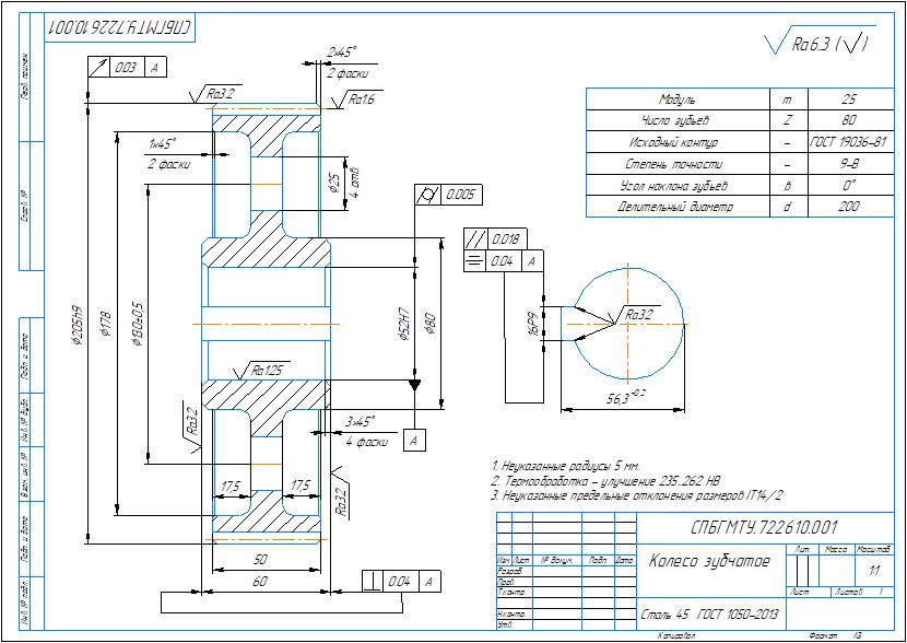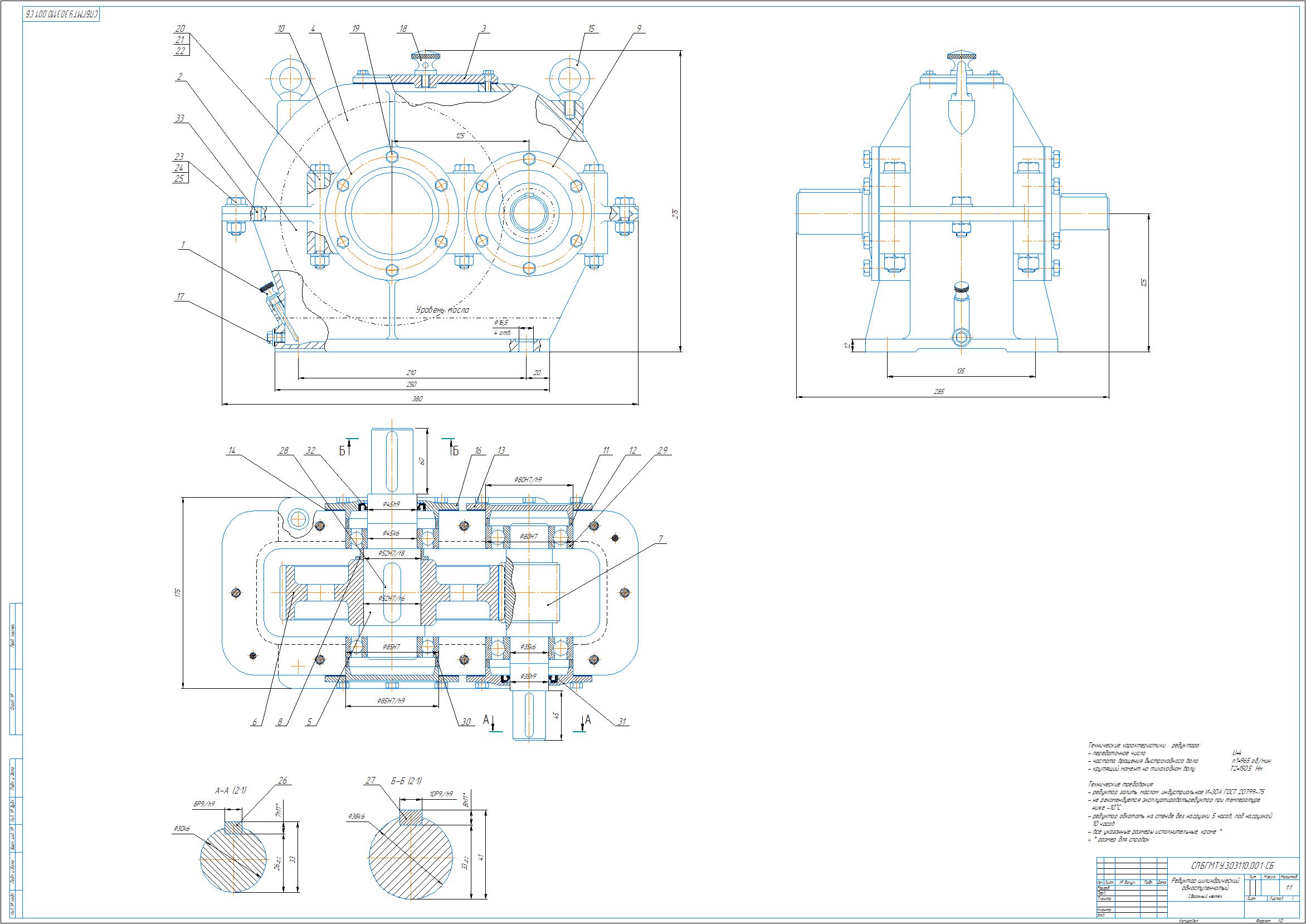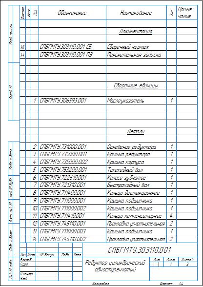 Сборочный чертеж и спецификация редуктора цилиндрического одноступенчатого с параметрами: межосевое расстояние: a=125, модуль m=2,5 мм, передаточное отношение u=4. Также приложен рабочий чертеж детали колесо зубчатое. Чертежи и спецификация выполнены в компасе