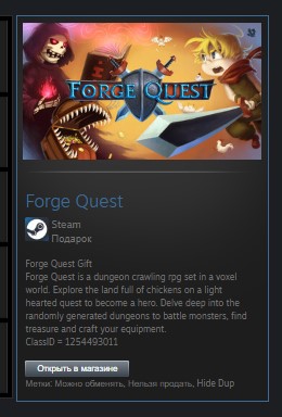 Forge Quest — это ролевая игра с подземельями, действие которой разворачивается в воксельном мире. Исследуйте земли, полные кур, в лёгком приключении, чтобы стать героем. Спускайтесь в глубины случайно сгенерированных подземелий, сражайтесь с монстрами, ищите сокровища и создавайте снаряжение.