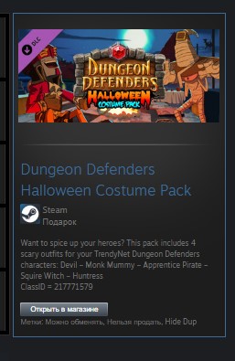 Хотите добавить остроты своим героям? Этот набор включает 4 жутких костюма для ваших персонажей из TrendyNet Dungeon Defenders: Дьявол – Мумия монаха – Ученик пирата – Оруженосец – Ведьма – Охотница