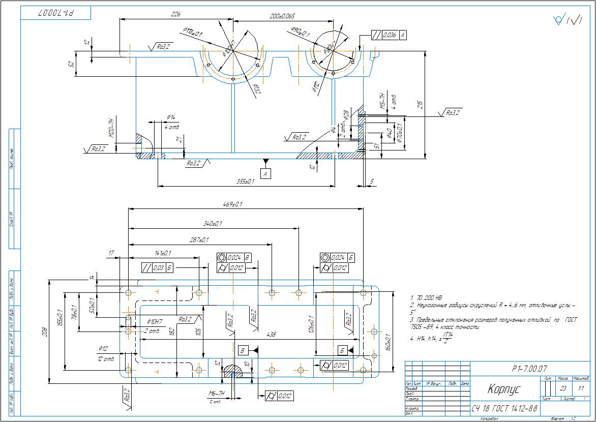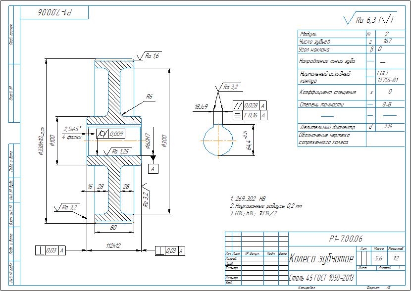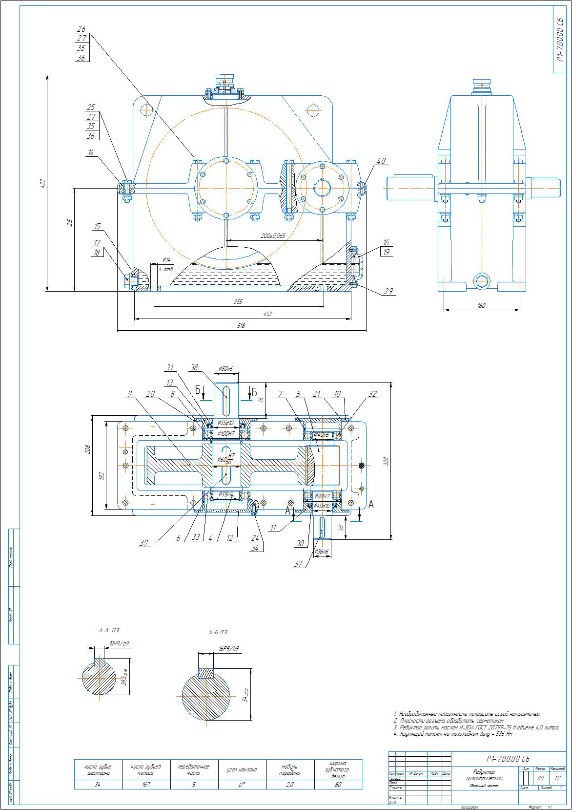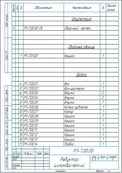 Сборочный чертеж и спецификация редуктора цилиндрического одноступенчатого с параметрами: модуль m=2 мм, межосевое расстояние a=200 мм, передаточное отношение u=5. Также приложены деталировочные чертежи: вал, зубчатое колесо, корпус редуктора. Чертежи и спецификация выполнены в компасе.