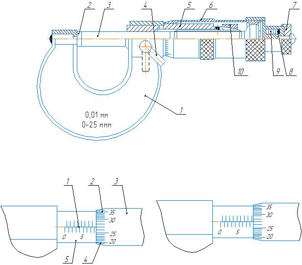 Чертеж микрометр МК 0-25 в программе Компас 3D