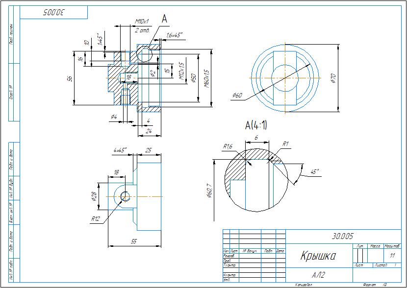 Рабочий чертеж и 3D модель детали крышка 30.005 в программе Компас 3D