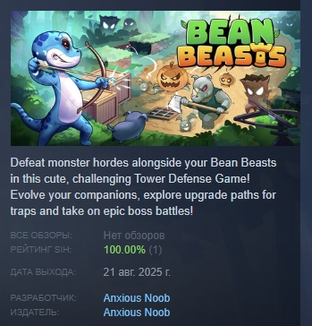 Defeat monster hordes alongside your Bean Beasts in this cute, challenging Tower Defense Game! Evolve your companions, explore upgrade paths for traps and take on epic boss battles!