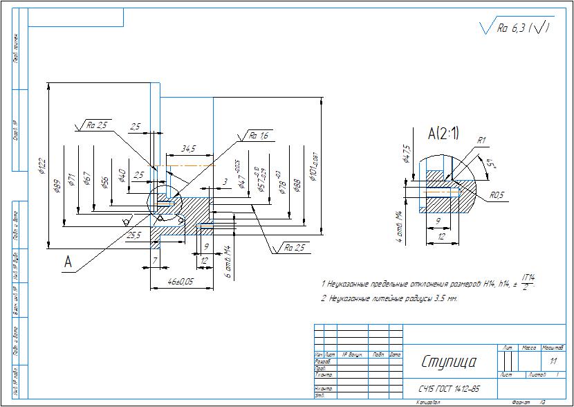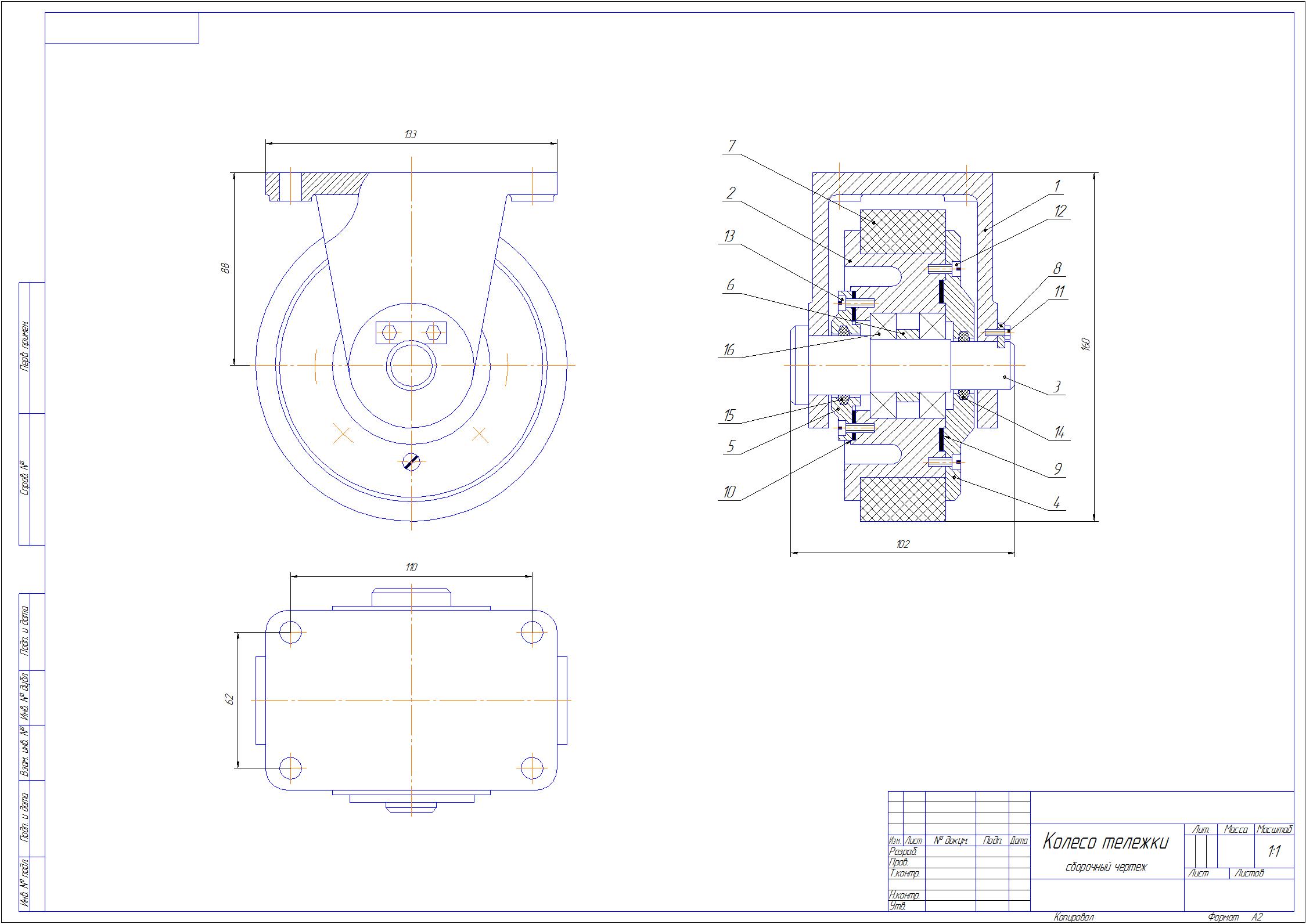 Рабочий чертеж детали ступица колеса тележки в программе Компас 3D