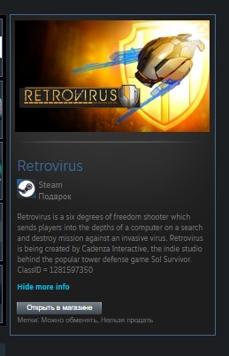 Retrovirus — это шутер с шестью степенями свободы, в котором игроки отправляются в глубины компьютера на поиск и уничтожение инвазивного вируса. Retrovirus разрабатывается Cadenza Interactive, независимой студией, стоящей за популярной игрой в жанре Tower Defense Sol Survivor.