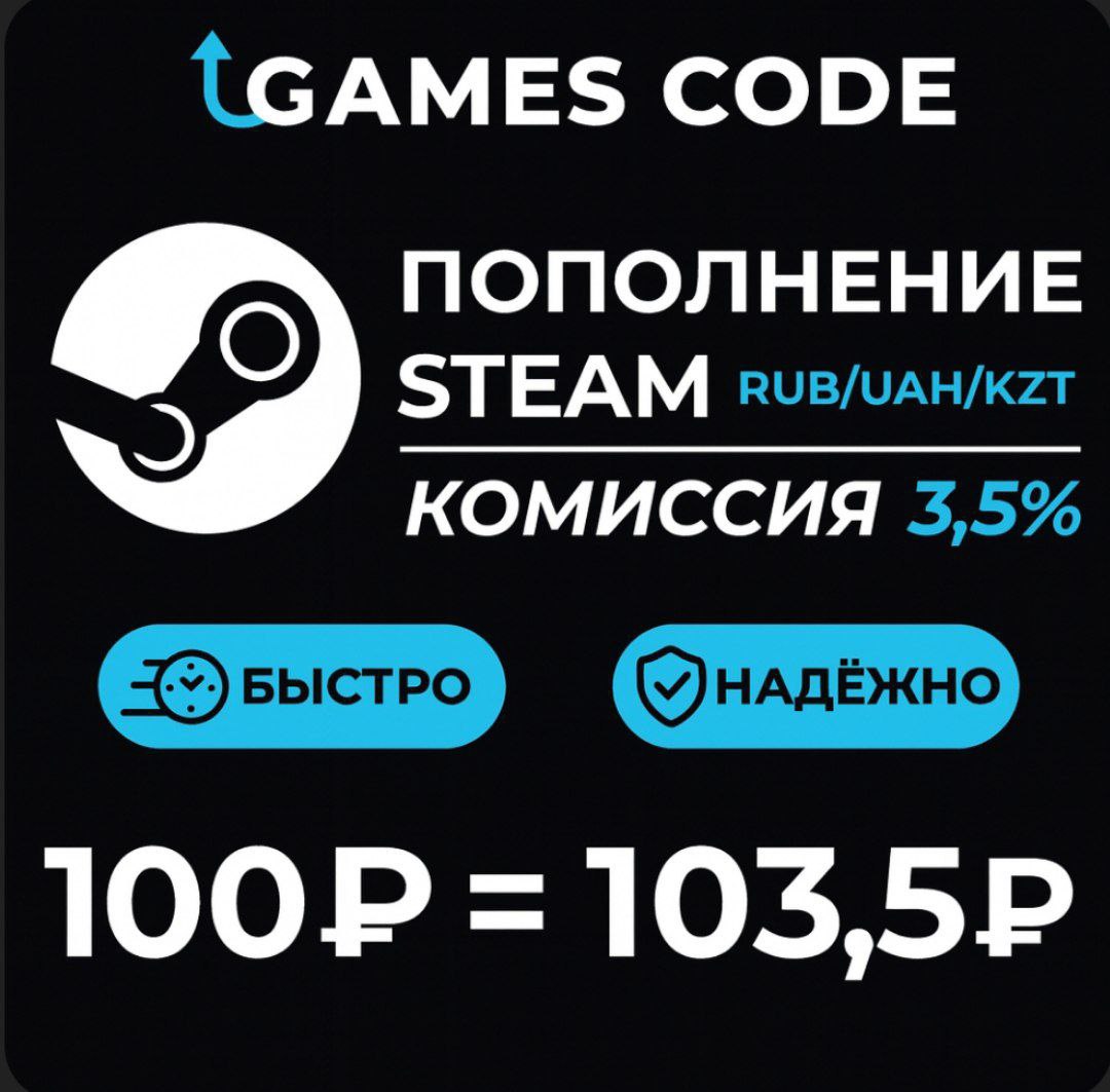 ⚠️Если валюта Вашего аккаунта не Рубль, то сумма к зачислению в моменты сильной нестабильности рубля к основным валютам может значительно отличаться - Вы можете ознакомиться с курсами Steam на сайте -
