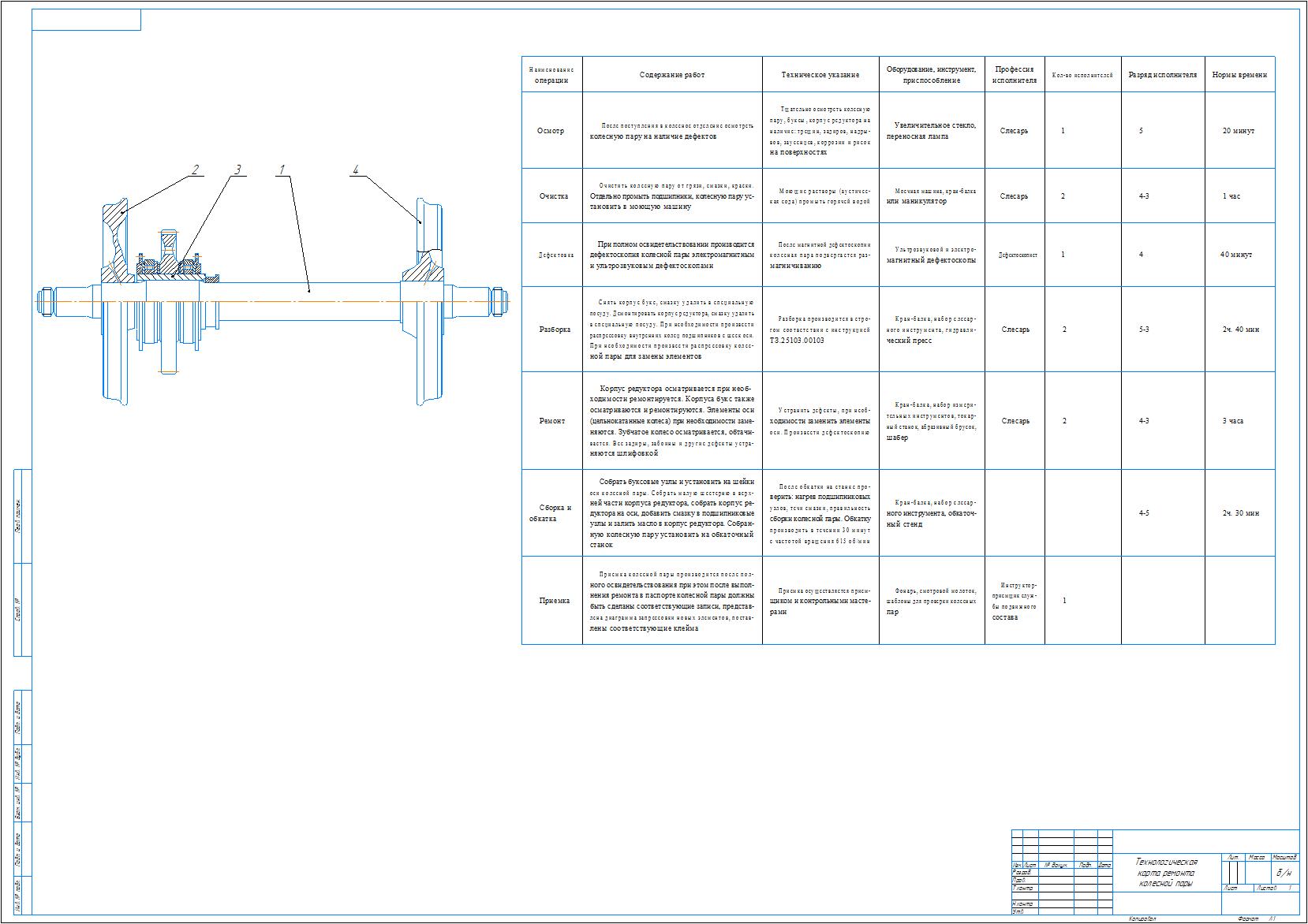 Технологическая карта ремонта колесной пары в виде чертежа на формате А1 в программе Компас 3D