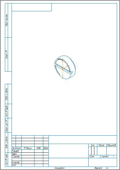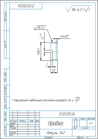 Рабочий чертеж, 3D модель, аксонометрическая проекция детали пробка 01.05.00.04 в программе Компас 3D