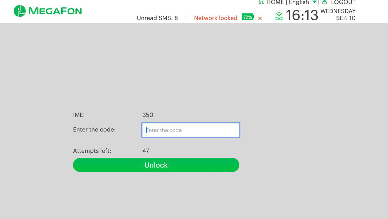 После ввода полученного кода разблокировки в веб-интерфейсе роутера - он начинает работать с SIM картами любых операторов.