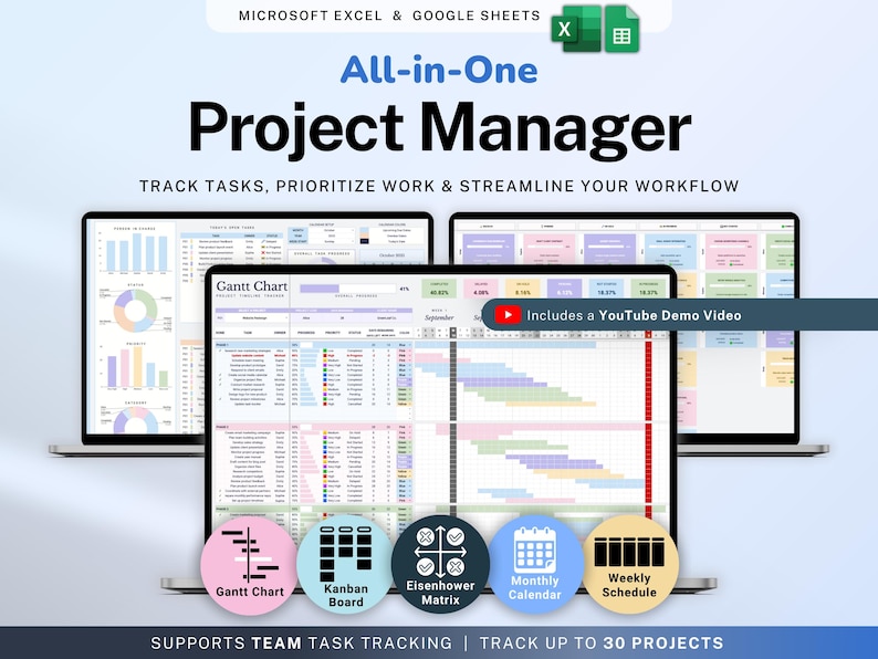 Благодаря всем функциям, объединенным в одном файле, вы сможете оставаться организованными, продуктивными и без стресса, отслеживая задачи, сроки и эффективность работы команды.