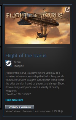 Flight of the Icarus — это игра, в которой вы играете за капера, владеющего дирижаблем, который перевозит грузы из города в город в постапокалиптическом мире, где небо контролируют пираты и опасность. Сбивайте вражеские самолёты, используя разнообразное смертоносное оружие.