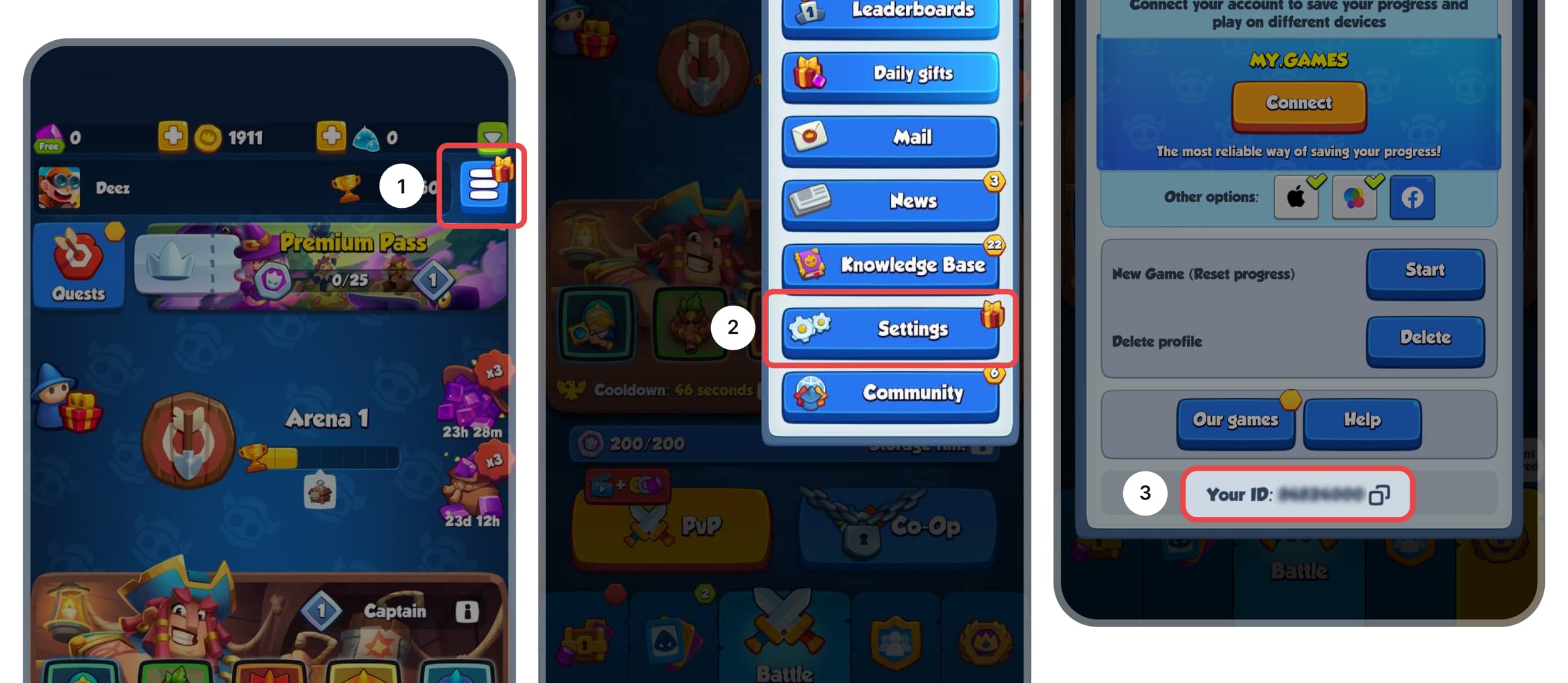 1️⃣. Укажите свой ID аккаунта и платформу через которую играете.