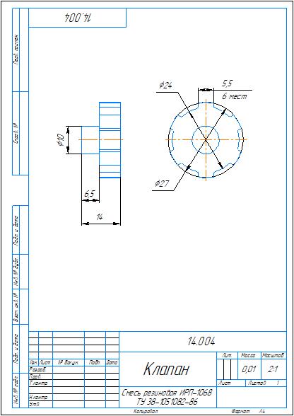Рабочий чертеж и 3D модель детали клапан 14.004 из сборки 14.000 пневмораспределитель альбома по деталированию Аксарина. Чертеж и модель выполнены в программе Компас 3D