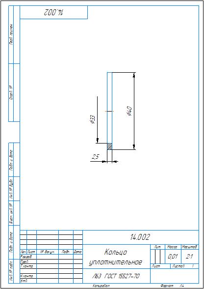 Рабочий чертеж и 3D модель детали кольцо уплотнительное 14.002 из сборки 14.000 пневмораспределитель альбома по деталированию Аксарина. Чертеж и модель выполнены в программе Компас 3D