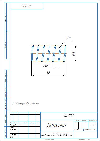 Рабочий чертеж и 3D модель детали пружина клапана 14.003 из сборки 14.000 пневмораспределитель альбома по деталированию Аксарина. Чертеж и модель выполнены в программе Компас 3D